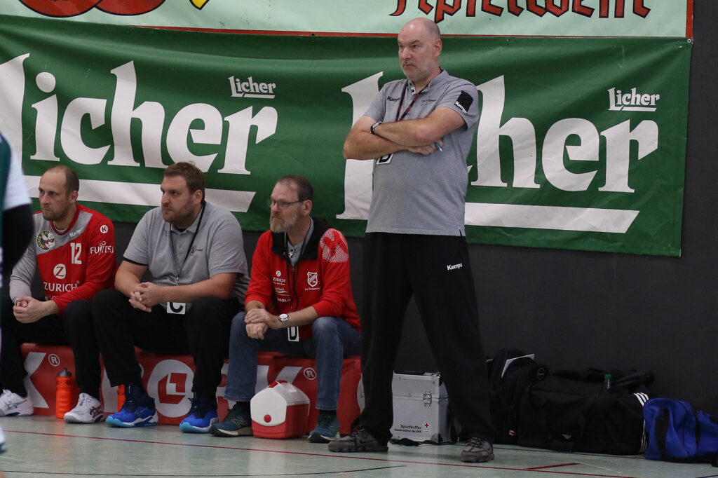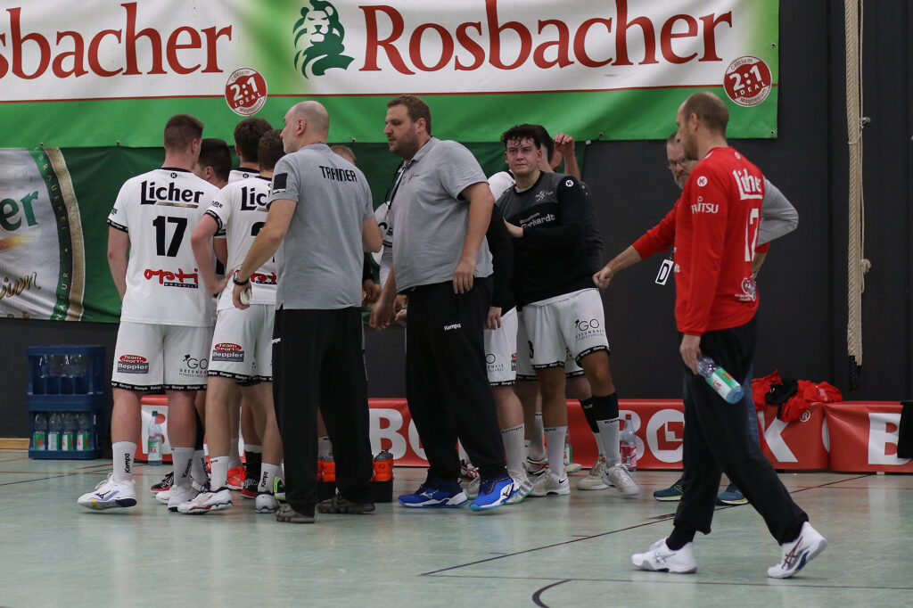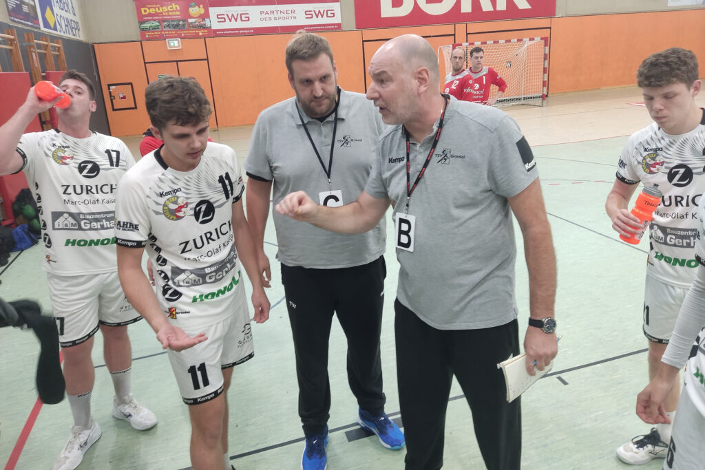 Timeout mit Trainer Kai Vornwald (B) und Co-Trainer Timm Weiß (C)