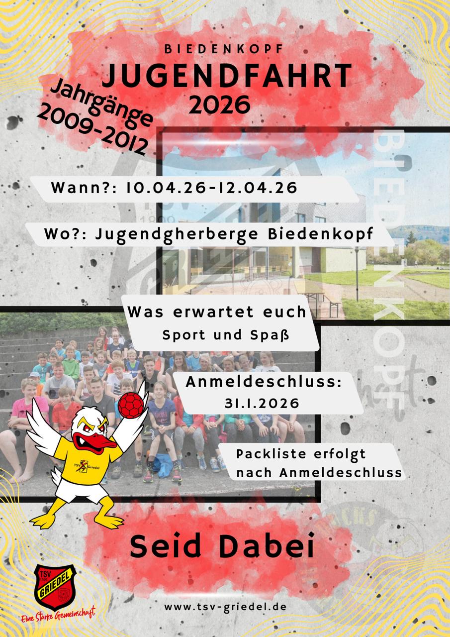 Die Jugendfahrt ist seit Jahren ein Highlight im Vereinskalender: Neue Freundschaften entstehen, Teams wachsen noch enger zusammen und jede Menge gemeinsame Erlebnisse sorgen dafür, dass dieses Wochenende noch lange in Erinnerung bleibt. Ob bei spannenden Spielen oder gemütlichen Abenden – hier erlebt ihr den TSV Griedel von seiner besten Seite: engagiert, fröhlich, sportlich und immer als starke Gemeinschaft!