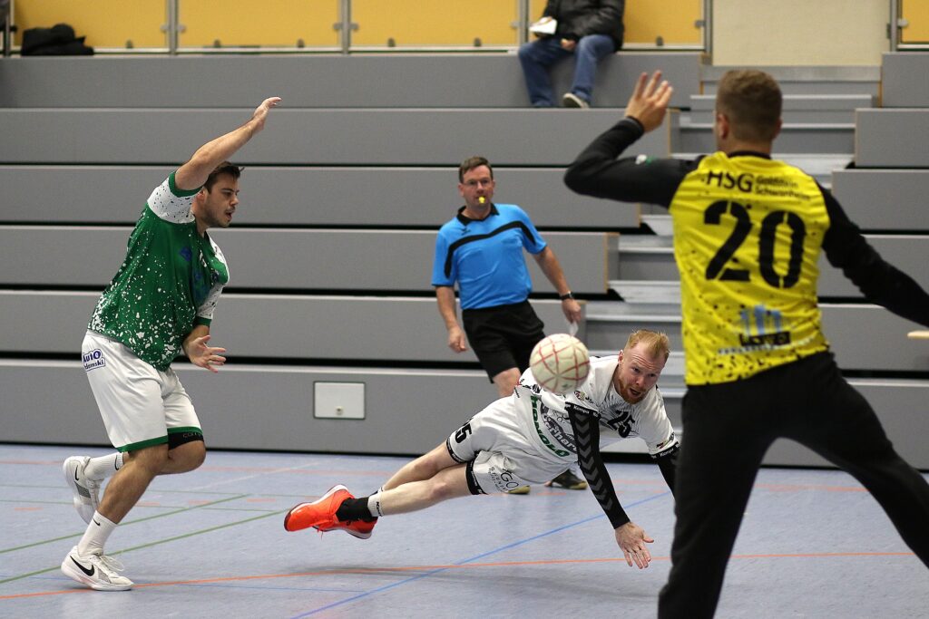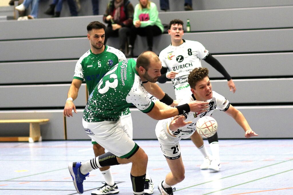 HSG Goldstein/Schwanheim: Tim Radmacher und Tom Becht im Tor, Steffen Fäth (7), Jan Philipp Schmitz (2), Nikola Vrdoljak (5), Nicola Jankovic (7/6), Fabian Leda (1), Bastian Stade (1), Zarko Jankovic (1), Maurice Wagner (3), Niko Schroth, Adrian Schwer (1), Stipe Vrdoljak (6) und Christopher Seipp