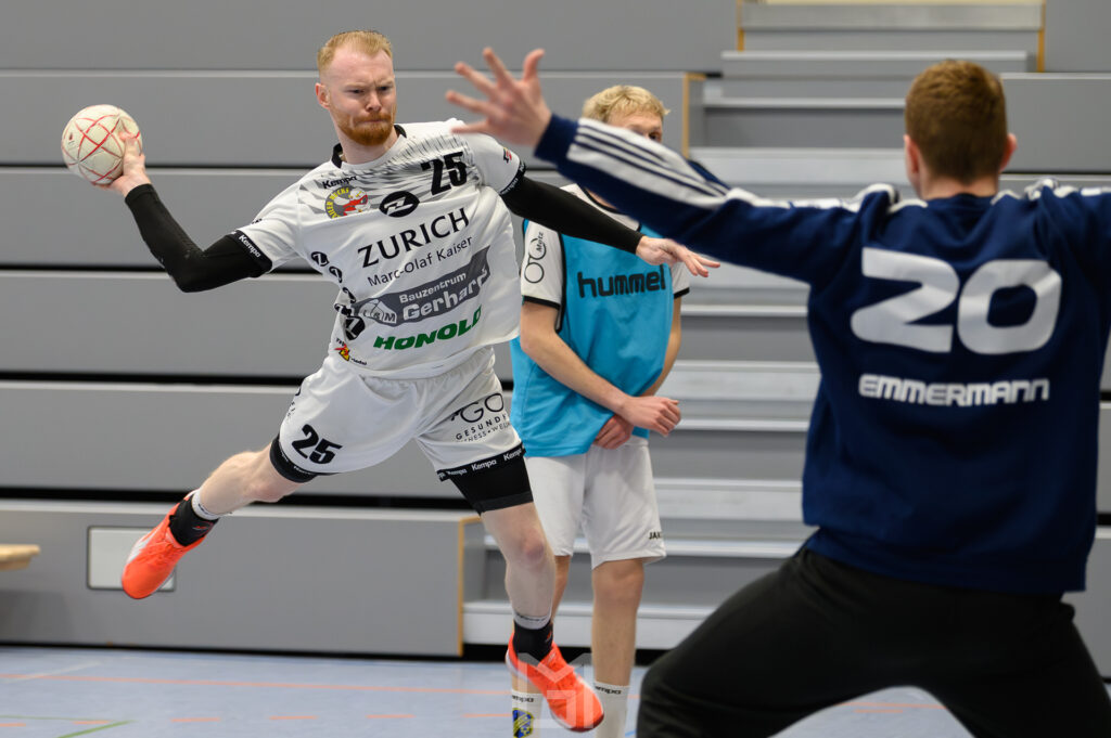 Der TSV Griedel fand schnell ins Spiel. Jannik Kuhl und Constantin Jantos trafen zum 2:0 und Thomas Graßl, Lukas Kipp und wieder Jannik Kuhl bauten den Vorsprung auf 5:2 (9. Min.) aus. Anscheinend dachte die Griedeler Mannschaft zu diesem Zeitpunkt, gegen die ersatzgeschwächte Mannschaft aus Wiesbaden kommt man zu einem leichten Sieg. Die nächsten acht Minuten gehörte der HSG VfR/Eintracht Wiesbaden. In dieser Zeit wurde mit einem 5-0 Lauf das Ergebnis auf 5:7 gedreht. Nach dem 8:8 durch Thomas Graßl bleib der TSV Griedel bis zum 10:10 daran und erzielte den letzten Ausgleich. Nach dem 10:13 gelang Jan Schepp sein erstes Tor zum 11:13 nach seiner Verletzung. Mit 11:14 wurden die Seiten gewechselt.