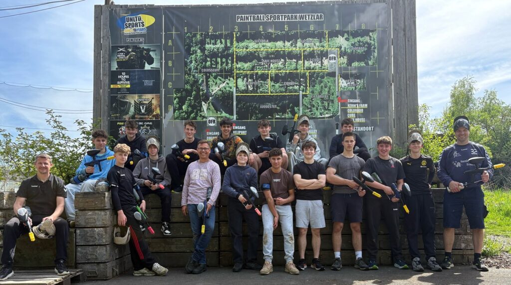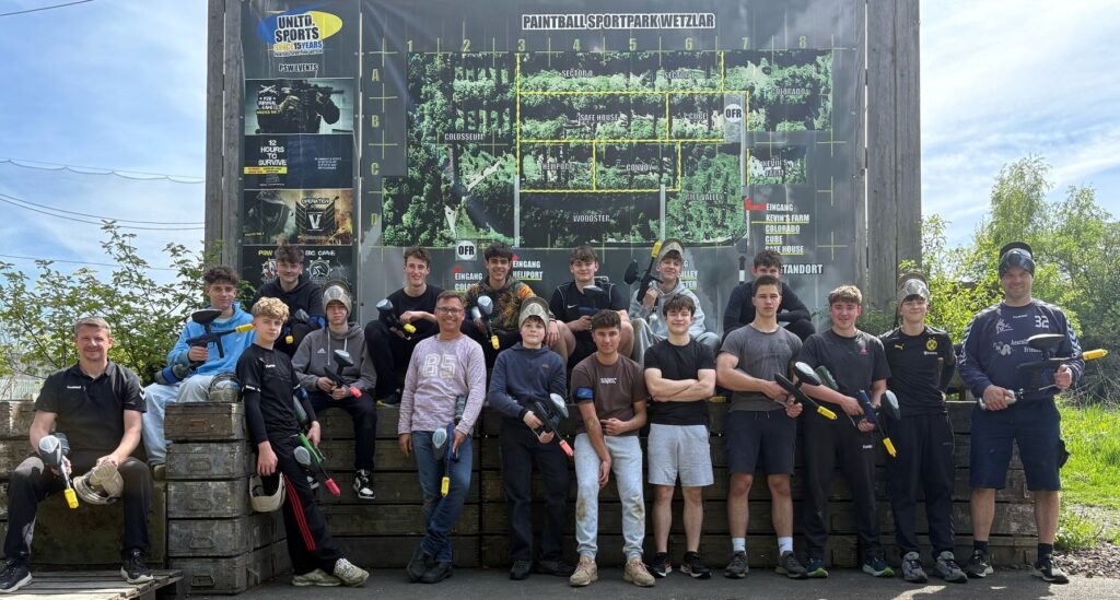 stehend von links: Wanja Köhler (Trainer), Johannes Simon, Lukas Ritter, Janis Müller, Clemens Päßler, Linus Dechert, Damon Richter, Noah Ladner, Gabriel Blažević, Constantin Kühnen, Leonard Klisa, Leander Knipp, Michel Lenz, Finn Peinelt, Kasimir Fleck, Vincent Janssen, Stefan Knebel (Trainer) und Carlo Scherer, es fehlt: Matthias Lenz (Trainer)