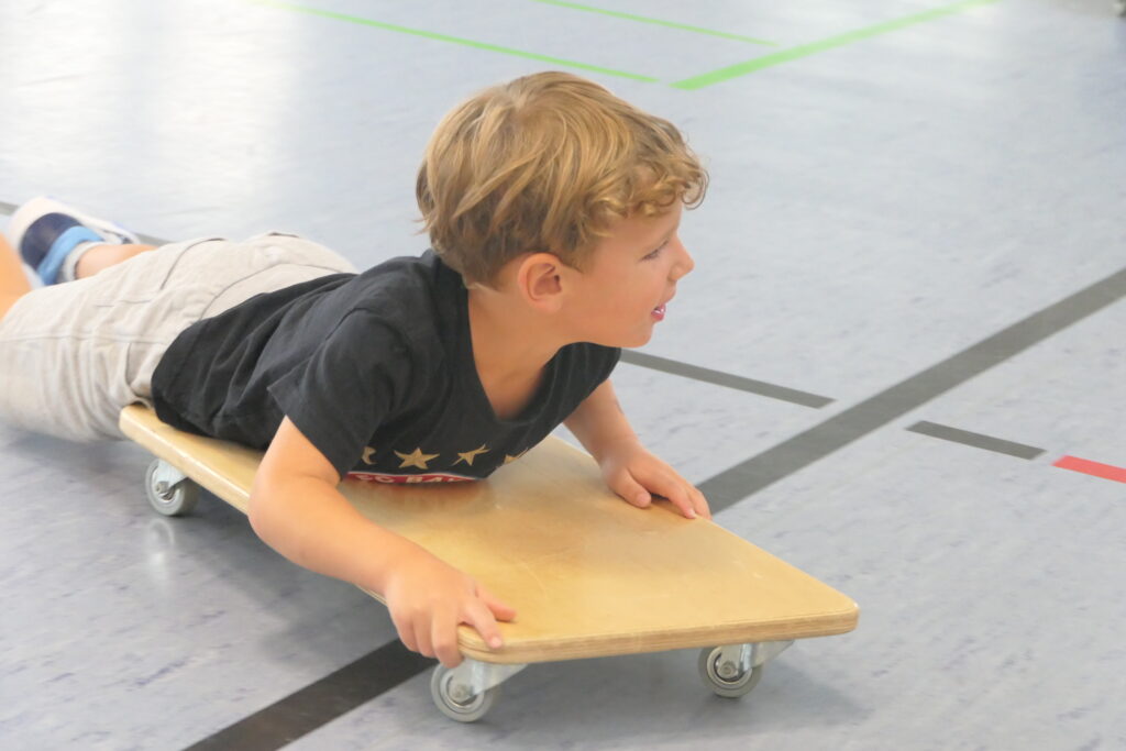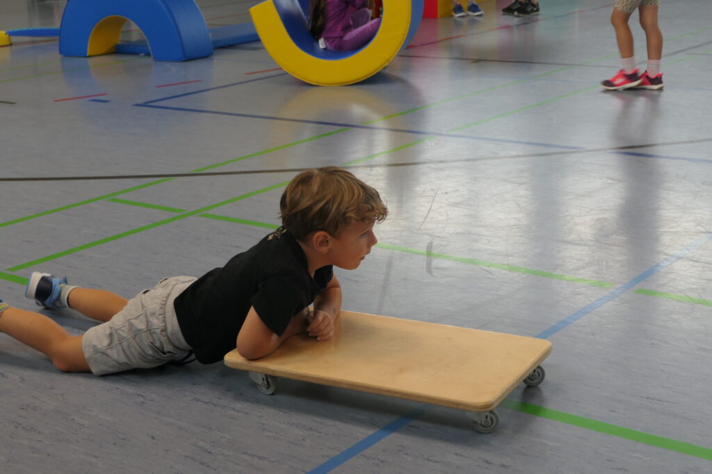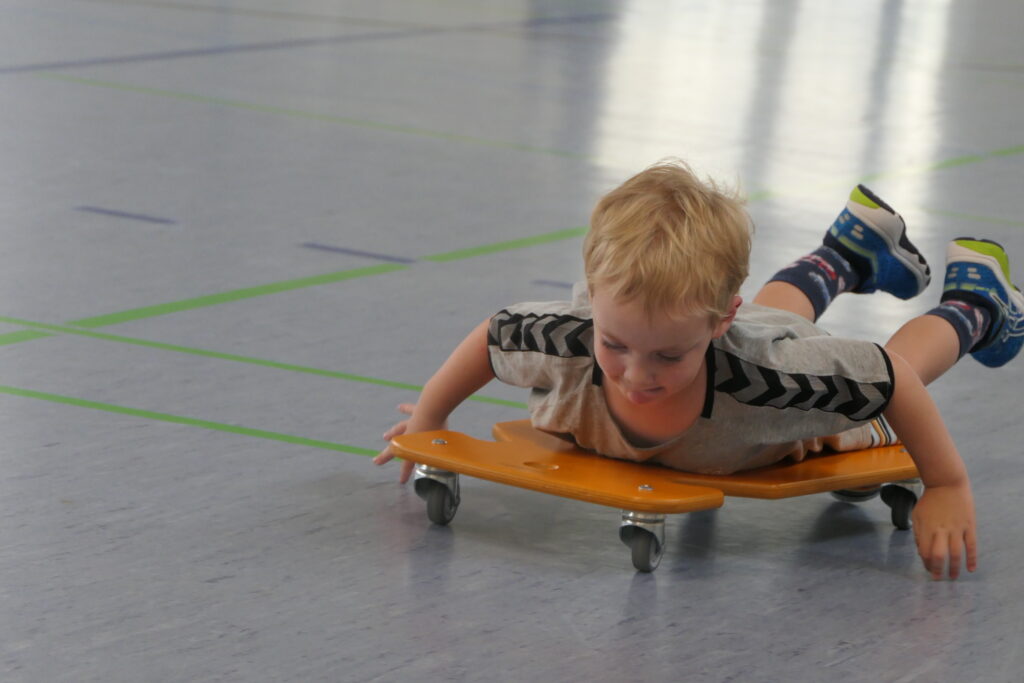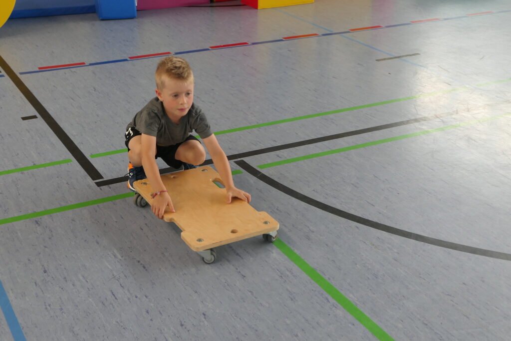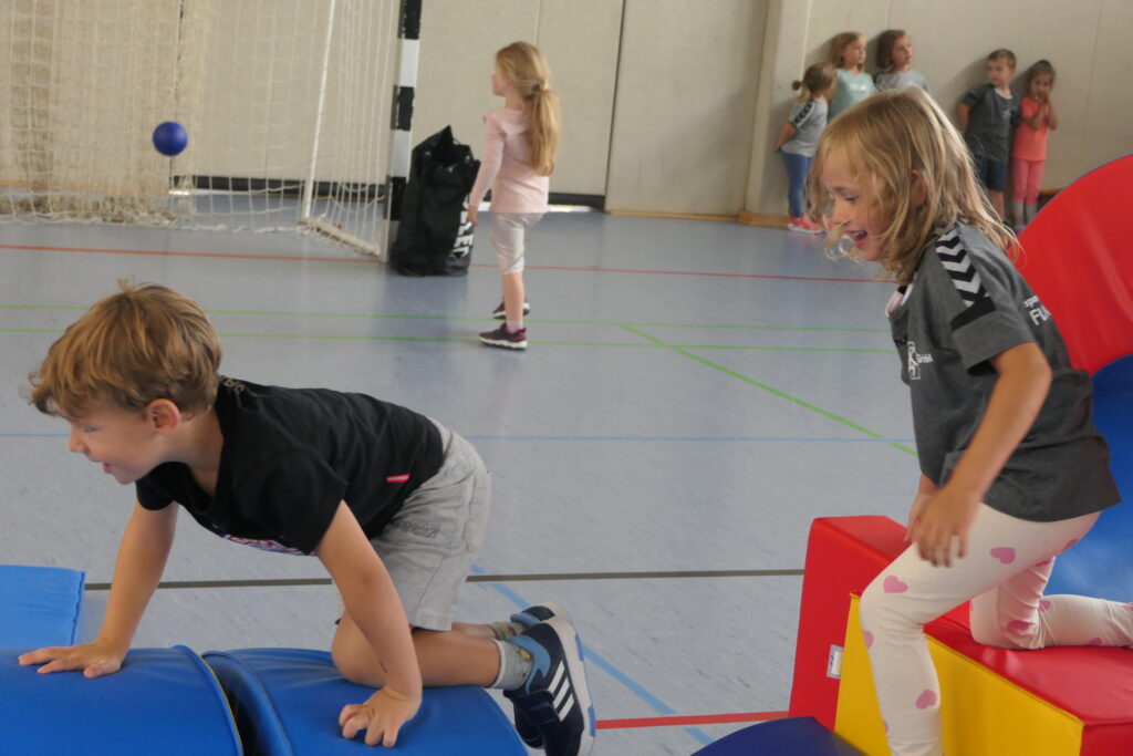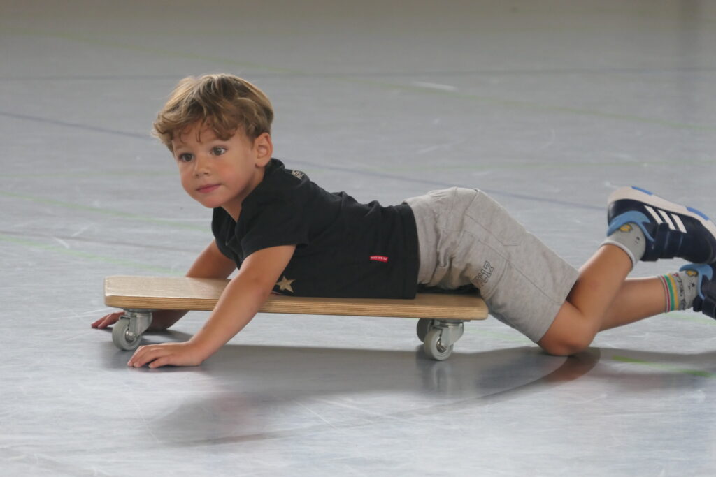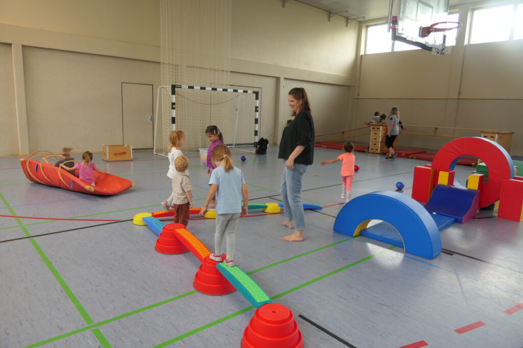 Unser Ziel in dieser Gruppe ist es frühzeitig breit angelegte Bewegungsorientierte Grundlagen zu schaffen, um später häufig auftretende Haltungsschwächen und Schäden entgegen wirken zu können. Dies bedeutet nicht die frühzeitige Hinführung zu einer speziellen Sportart, sondern die Elemente von Spielen und Toben unter der Berücksichtigung von Wahrnehmung, Gleichgewicht, Orientierung und Differenzierung stehen im Vordergrund. Diese Ziele versuchen wir zum größten Teil mit so genannten „Bewegungslandschaften“ zu erreichen. Eine Bewegungslandschaft fordert zu elementaren Bewegungsformen heraus: Springen, Klettern, Schaukeln, Gehen, Laufen, Heben, Ziehen, Schieben u.v.m. Die Bewegungslandschaft regt zum Rollenspiel an,